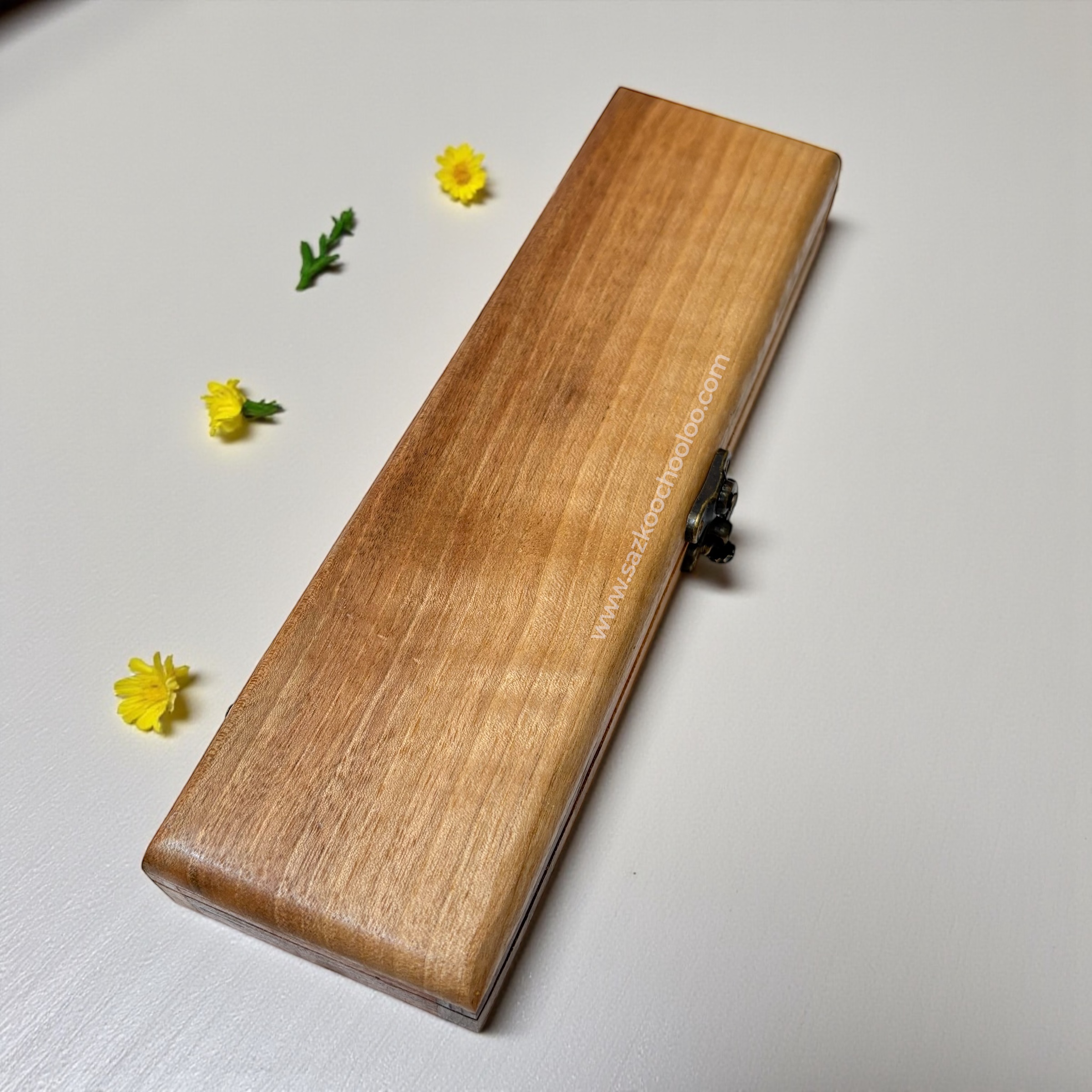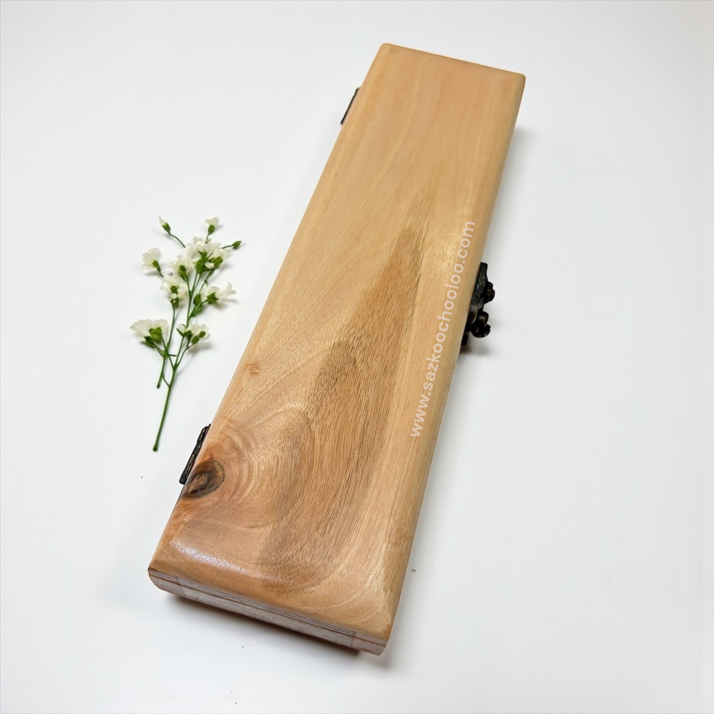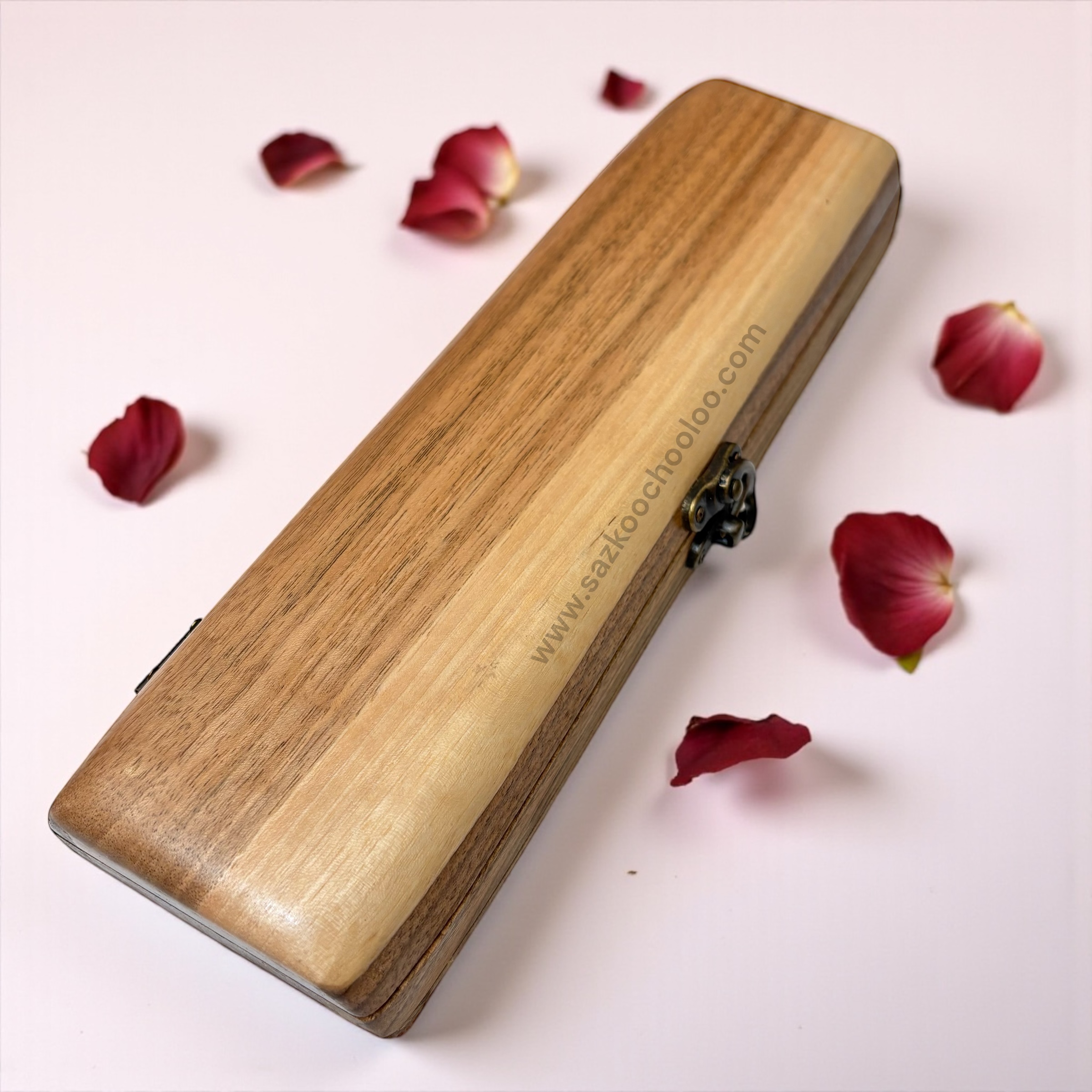 جعبه مضراب سنتور چوبی جنس چوب گردو مناسب قرار گرفتن دو جفت مضراب، ابعاد 25*7.5*3.5 سانت،وزن 225 گرم