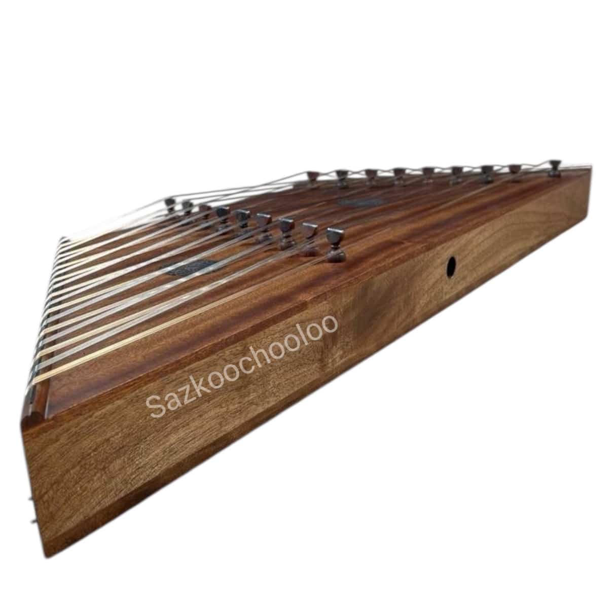 🔸 سنتور موسوی آکاژو – نشانه ساز اصیل 🔸 صفحه رویی: چوب آکاژو با رنگ ماهگونی جذاب و گرم ویژگی خاص: وجود پلاک طلایی سمت چپ ساز (نشانه اصالت ساخت استاد حمید موسوی)