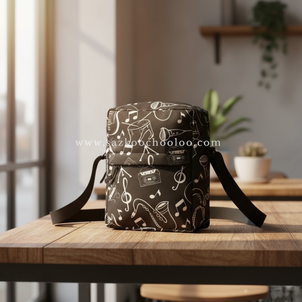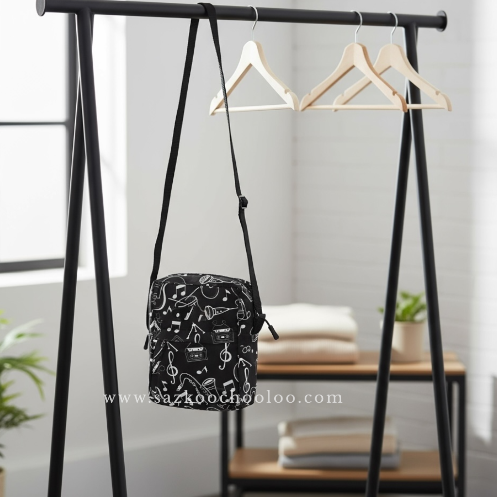 کیف دستی مشکی،دارای یک جیب داخلی و یک جیب زیپ دار روی کیف برای موبایل و وسایل کوچک